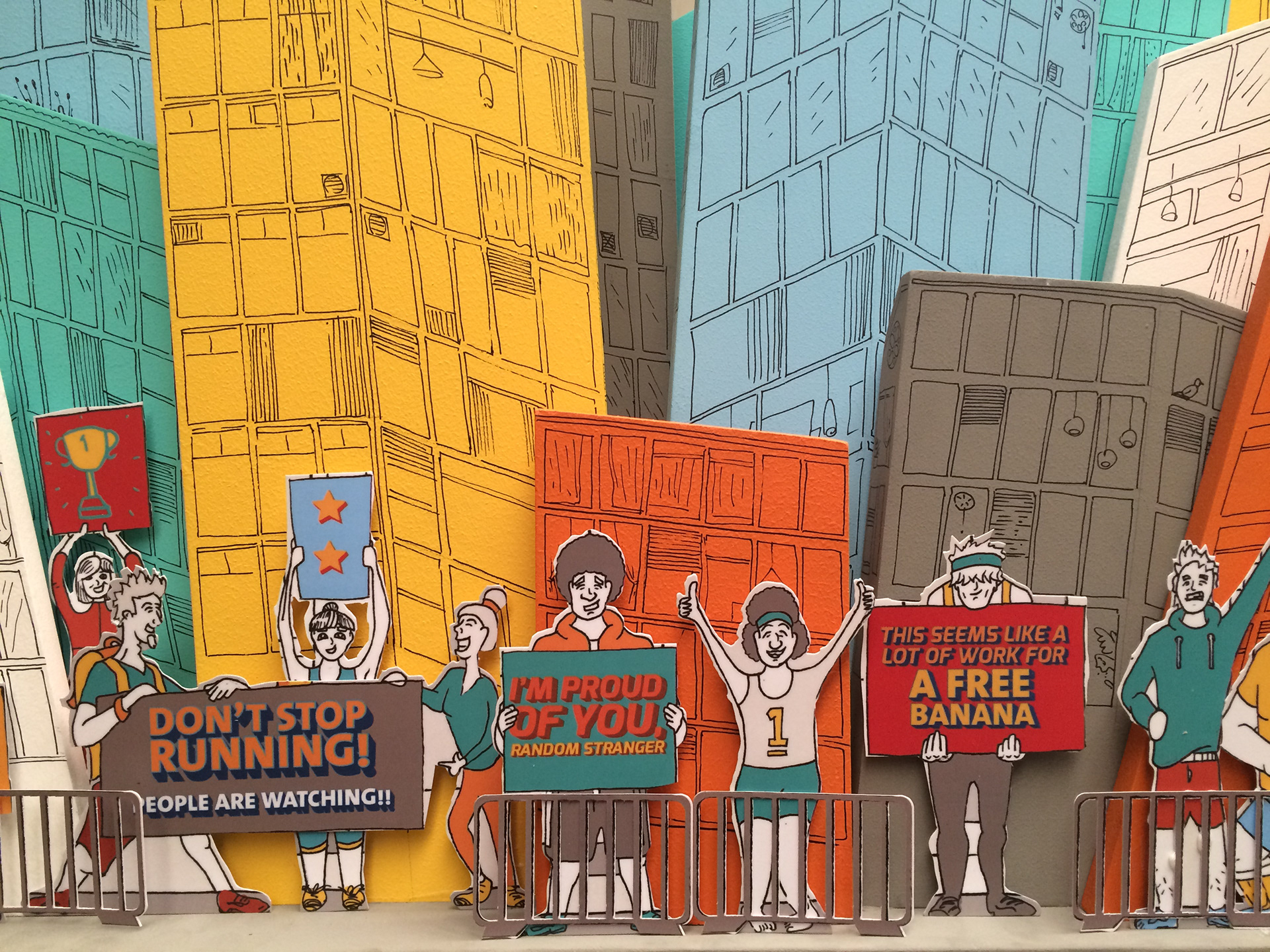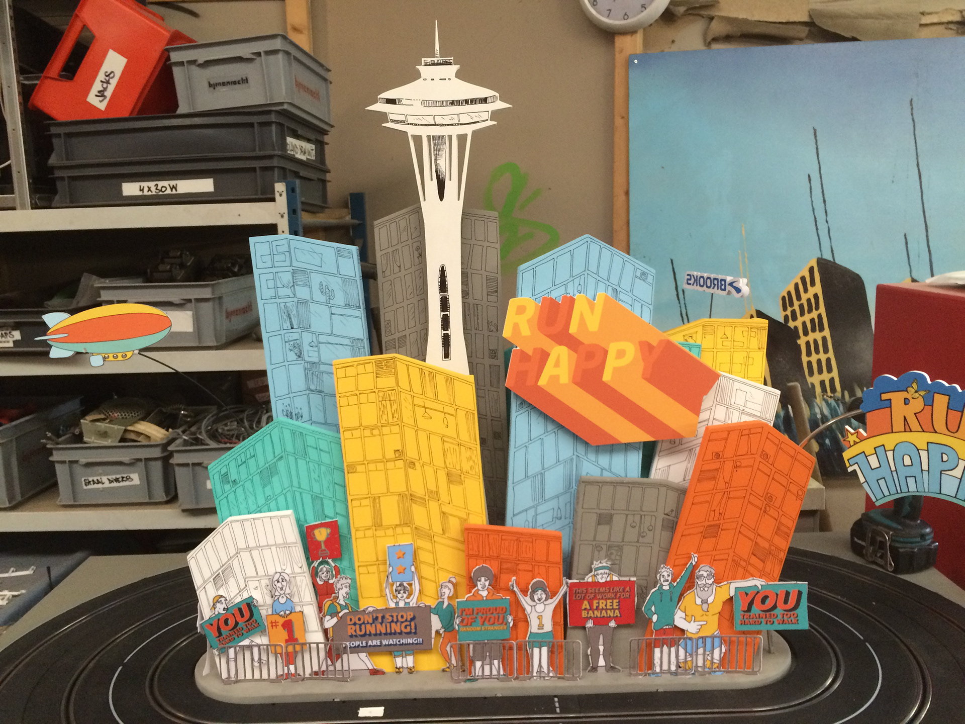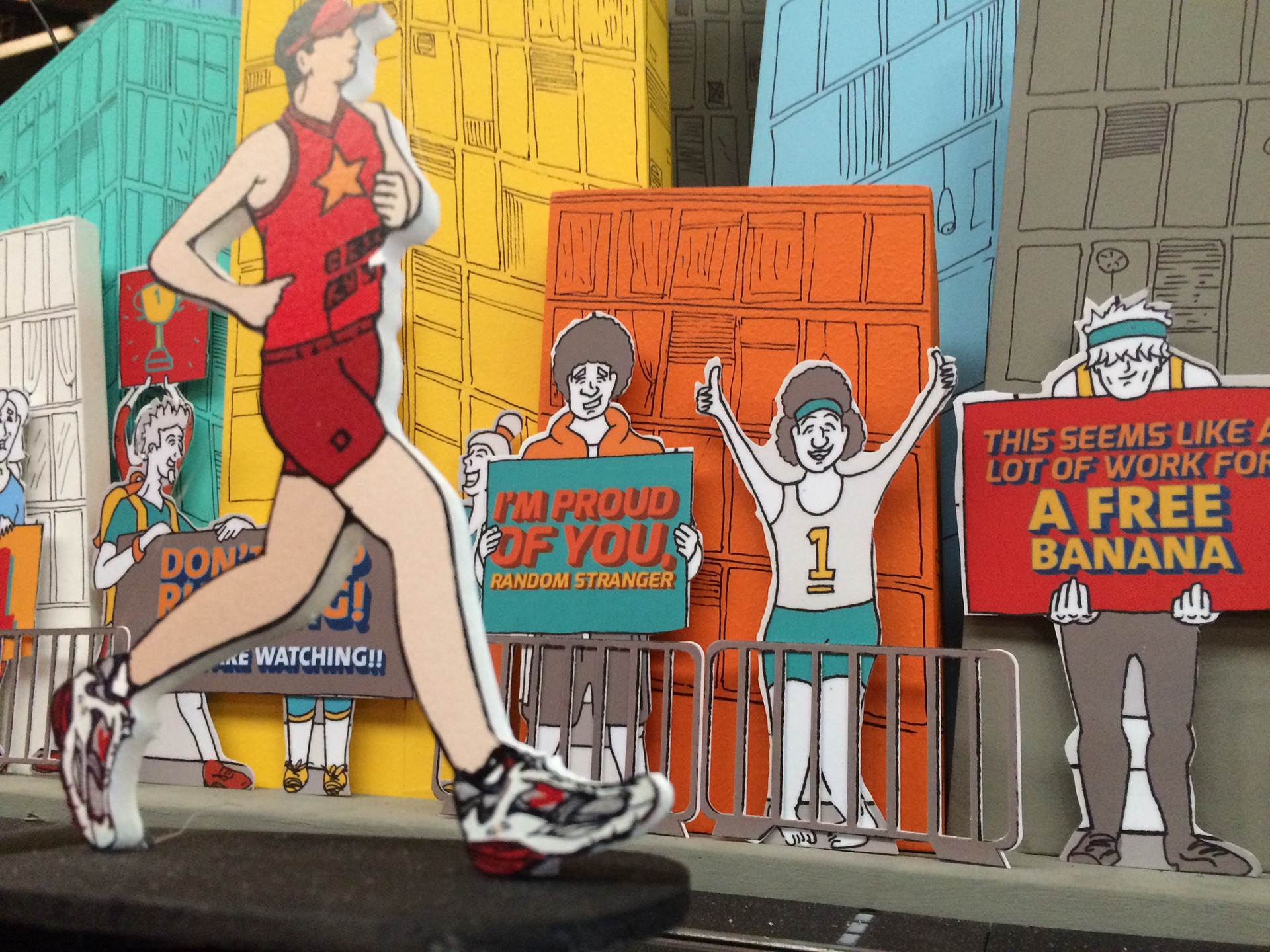 Through pressure mats little marathon runners are able to run/drive on a racetrack.